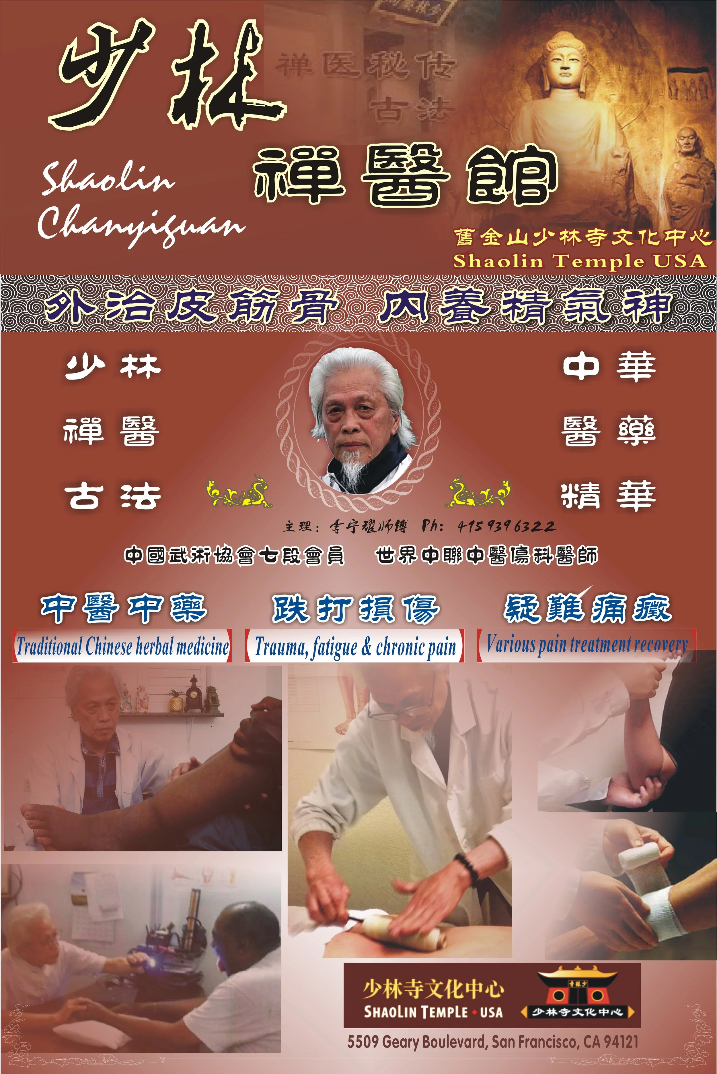 少林寺文化中心(旧金山)主任释延然师傅·合作开设《少林禅医馆》留影。